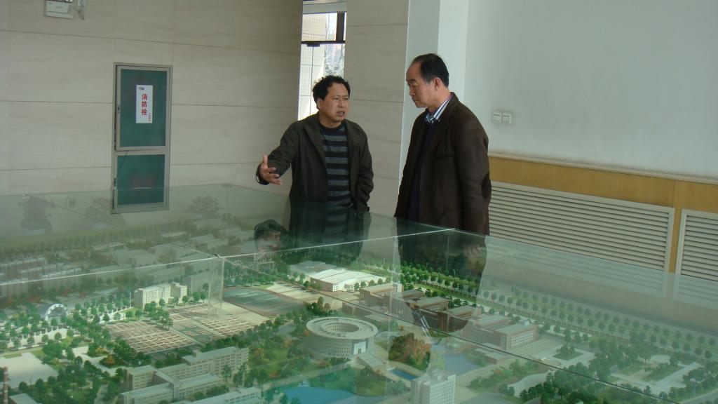 座谈会后,段根良副书记一行在陕西科技大学李虎成副书记的陪同下参观了陕西科技大学校区总体规划模型。