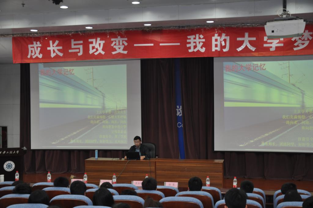 3月31日下午,由学生工作部(处)主办,管理学院承办的百场主题教育报告会及讲座第七场活动在我校临潼校区图书馆二楼报告厅举行,我校管理学院院长王进富教授做了题为“成长与改变—我的大学梦”的主题报告,部分学院辅导员和学生300余人参加了报告会。报告会由学生工作部(处)副部长张慧主持。