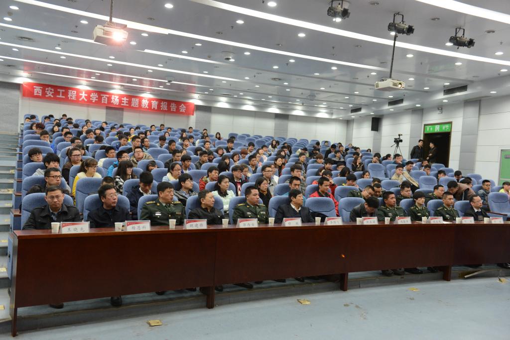 2015年3月23日上午,优秀大学生官兵代表进高校巡回报告会在我校图书馆二楼报告厅隆重举行,这也是今年我校“百场主题教育报告会及讲座”的第五场报告会。兰州军区司令部动员部正团职参谋穆鹏、陕西省军区军务动员处正营职参谋郭正颖、陕西省教育厅高校学生工作处正处级调研员郭西安、西安市临潼区人民武装部政治委员魏建锋、我校党委副书记李博飞出席报告会,相关部门负责人、部分辅导员和300余名学生代表共同参加了报告会。