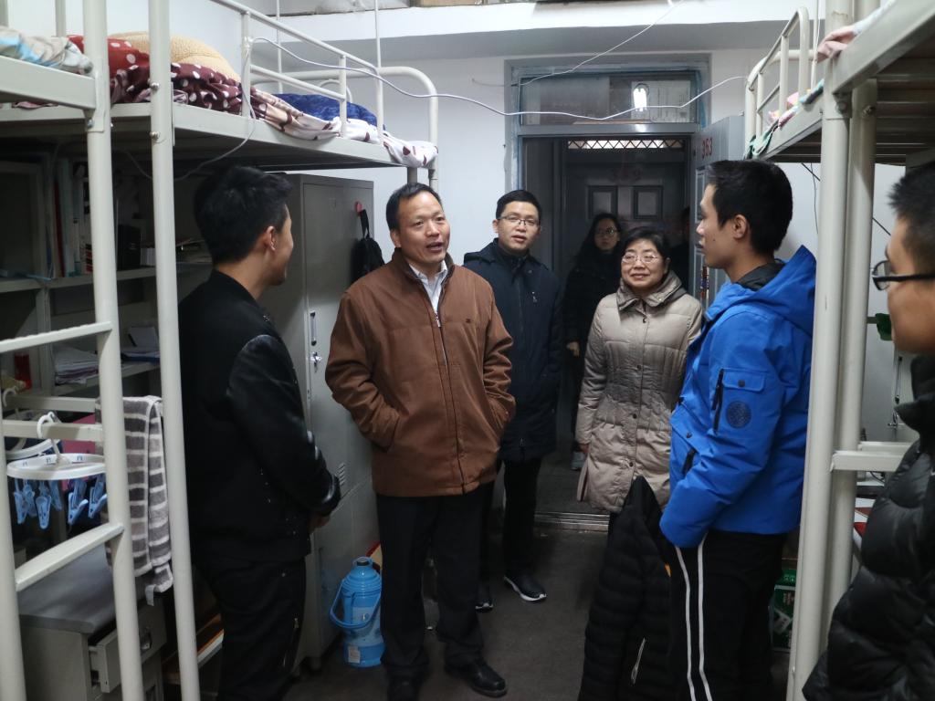 随后,朱君强、朱永民在学生工作部、校团委、保卫处和后勤管理处等相关部门的陪同下,分别对金花、临潼两校区的学生公寓进行了检查,各学院党委副书记、辅导员带领学生干部对学院的学生宿舍进行了自查。检查期间校领导仔细察看了学生宿舍的硬件设施、卫生环境,对学生安全用电、防火防盗等工作进行检查,并与学生亲切交流,了解他们的生活需求,关心大四学生的求职就业情况,提醒同学们在期末考试到来之际,要做好复习安排,诚信考试,同时要提高安全防范意识,切实保障自身的人身财产安全。