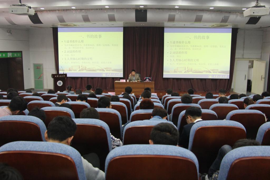 4月9日下午,由学生工作部(处)主办,环境与化学工程学院承办的“百场主题教育报告会及讲座”第十四场活动在我校临潼校区图书馆二楼报告厅举行,我校纪委委员、纪委副书记、监察处处长郑卫东老师做了题为“书的世界 我的世界”的主题报告。学生工作部(处)相关人员、部分学院辅导员和学生代表320余人参加了报告会。报告会由学生工作部(处)副部长张慧主持。