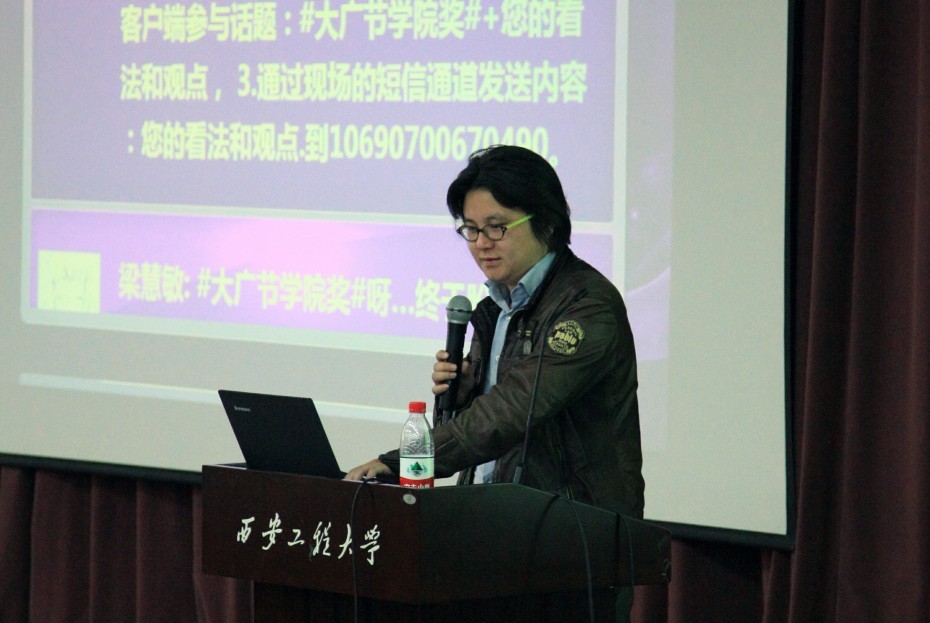 为了促进我校学风建设,发扬我校专业特色,丰富学生校园文化活动,2013年3月22日下午,第十一届(2012-2013)中国大学生广告艺术节学院奖全国高校巡讲西安站在我校临潼校区图书馆多功能报告厅举行。服装学院党总支书记王志,党总支副书记马云,学生工作办公室副主任张峰、学生辅导员束坤翼、马薏雯及全校400多名学生在现场感受了激情的创意风暴。