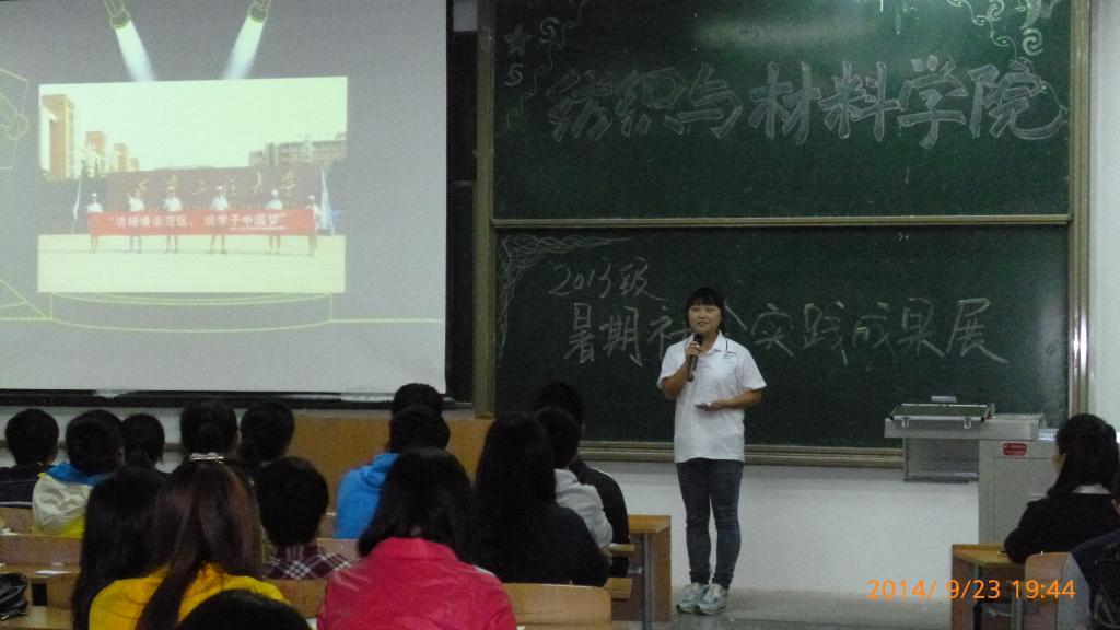9月23日晚上7:00,纺织与材料学院在临潼校区B-133举办了2014年暑期社会实践成果交流大会。13级辅导员付成程老师以及2013级全体学生参与了本次活动。