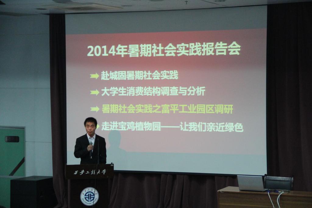 首先,理学院团总支书记刘畅致开幕词,她指出:暑期社会实践活动对于广大同学来说是一个不可多得的机会,是增强自己核心竞争力的平台。当代大学生应该做到知行合一,在实践中运用所学,让知识得以升华。随后,学生代表赴汉中城固社会实践团成员仝智鹏同学发言,他结合自身体会,从暑期社会实践活动的起源、经历给大家讲述了自己的在暑假实践中的感悟和收获,引起了同学们的共鸣。接着,理学院评选的四支暑期优秀实践团队向大家展示了自己队伍的实践成果,并进行了精彩答辩。他们分别是赴汉中城固暑期支教社会实践团、大学生消费结构调查分析小分队,赴渭南富平工业园区调研小分队,宝鸡植物园调研团。报告会最后,办公室辅导员文毅做了总结发言,他用“有意义,有感受”高度概括了本次活动,同时也对大家提出三点希望:他希望同学们能将知识与实践相结合,希望同学们能加强社会实践活动机制创新,希望大家能创造性学习,取得更优异的成绩!