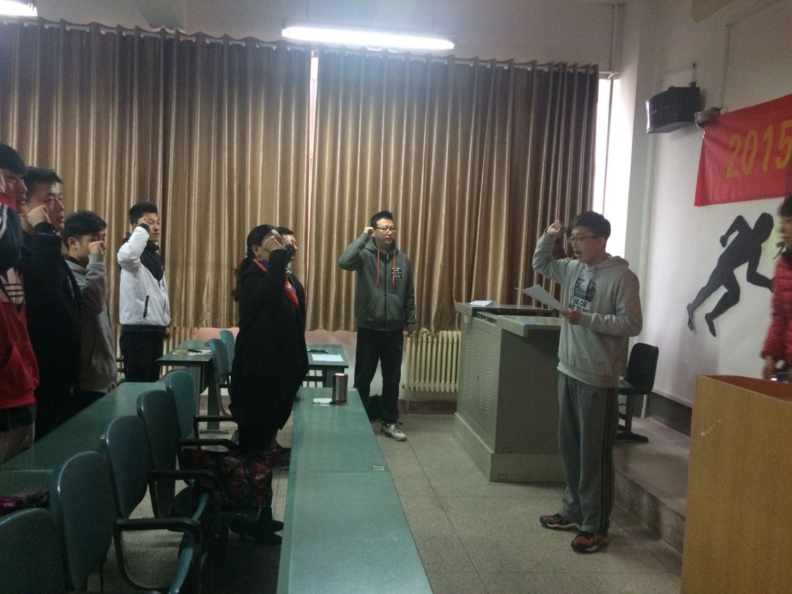 仝燕老师对运动员踊跃参加运动会的积极性表示了感谢,对大家热爱体育的运动精神表示了肯定,并要求全体运动员要在运动会上秉承以往参赛的热情和信心,奋勇拼搏,再创佳绩,展现我院学子的靓丽风采和精神风貌。高魁老师对运动员的日常训练、安全事项及突发事件应急处理做了安排布置,并传达了学院对校运动会获奖运动员的评优奖励办法。13级电气自动化专业苏泽渊、14级计算机专业张航代表运动员发言。最后全体运动员庄严起誓:为了学院的荣誉,我将在本次运动会上,团结友爱,公平竞争;尊重对手,尊重裁判;赛出风格,赛出水平;顽强拼搏,奋勇争先;勇夺第一,为院争光!