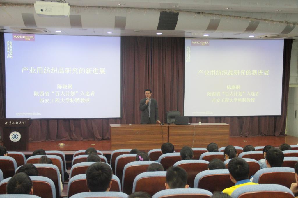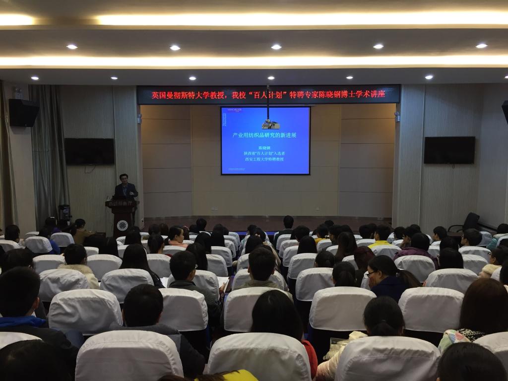 2015年3月26、30日,纺织与材料学院邀请英国曼彻斯特大学,陕西省“百人计划”入选者,我校客座教授陈晓钢分别在金花校区西纺报告厅、临潼校区图书馆报告厅为学生做了两场精彩的学术报告,报告围绕“产业用纺织品研究的新进展”,结合不同年级学生的特点展开讲解,取得了良好的效果。本次讲座也是我校百场主题教育报告会及讲座之一。