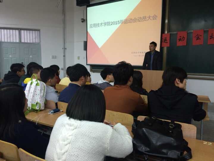 为迎接我校第三十六届田径运动会,应用技术学院于4月1日下午在临潼校区召开运动会动员大会,大会由学院团总支书记丁浩主持,学生工作办公室主任高魁出席,14级全体学生参加。