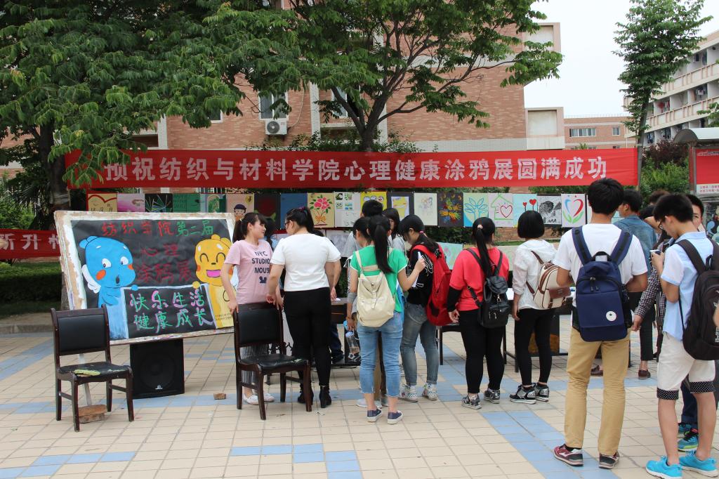 2015年5月20日中午,纺织与材料学院在临潼校区文化广场举办了“绘心绘意-随心飞扬”心理健康涂鸦展活动。此次活动由西安工程大学学生工作处主办,纺织与材料学院承办。