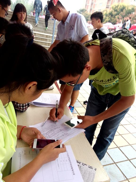 9月15日——16日,电子信息学院团总支、学生会、科技协会三大学生组织在临潼校区学生公寓2号楼下举行招新活动,活动得到了2015级新生的积极响应。