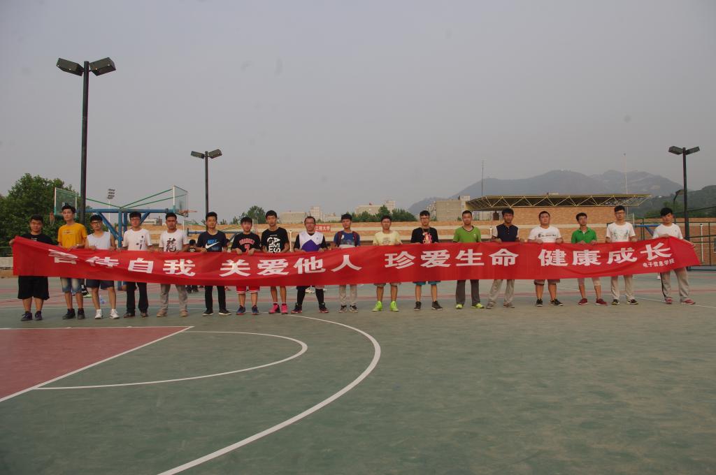 5月6日下午,电子信息学院在临潼校区篮球场举办“善待自我,关爱他人,珍爱生命,健康成长”篮球赛。