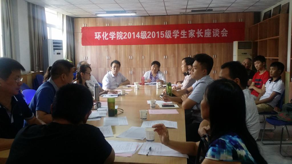 8月27日下午,环化学院在金花校区二楼资料室召开以“构建‘家·校’互动平台,促进优良学风建设”为主题的学生家长座谈会。环化学院党委副书记袁群、辅导员张苹、陆瑞成、贾天昱及14级15级家长出席座谈会,学工办主任林定武主持座谈会。
