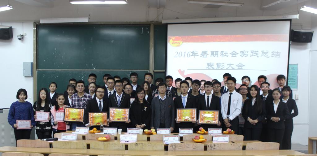 表彰环节,刘妍萍宣读电子信息学院2016年暑期社会实践活动优秀个人及优秀团体的表彰文件,各位老师为获奖学生颁奖并合影留念。