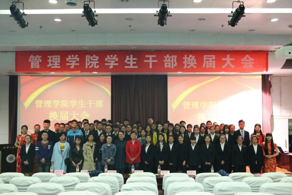 为加强管理学院各级学生组织学生干部管理规范,2016年10月21日中午,管理学院在临潼校区图书馆二楼报告厅举办了2016年学生组织换届大会。学院党委副书记张冬梅、学生工作办公室主任刘蓉,团总支书记王馨可,辅导员王张妍、王志刚、吴昌敏以及全体团总支、学生会、科协的学生干部参加了本次活动。