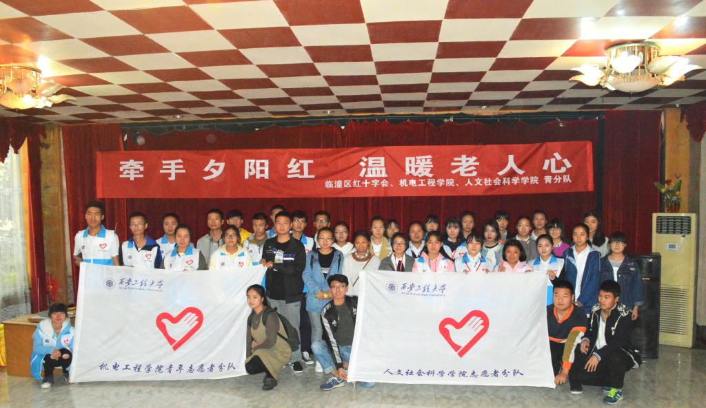 为加强大学生思想道德建设,弘扬中华民族尊老、敬老的传统美德,10月22日,由临潼区红十字会主办,机电学院和人文学院承办的以“牵手夕阳红,温暖老人心”为主题的志愿服务活动在临潼区金秋爱心乐园举行。