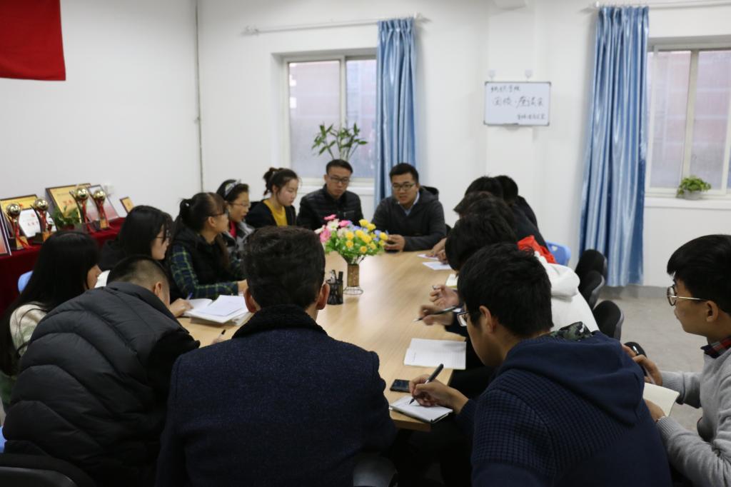 2016年10月29日晚,纺织与材料学院第一届院级团校学生骨干座谈会在临潼校区1号学生公寓党团活动室顺利召开。15级辅导员马帅、团总支副书记王婵、团总支秘书长毛岸英、学生会副主席李琛、崔国栋以及15级各班班长团支书参加座谈会。