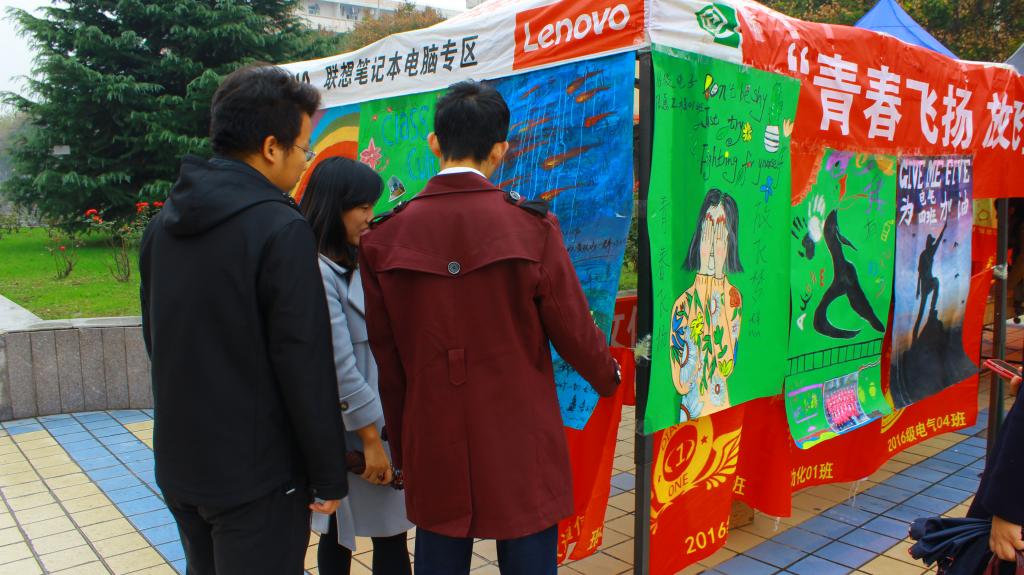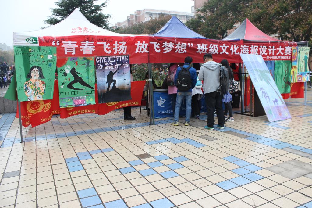 为营造和谐团结的班级文化氛围,优化校园文化环境,巩固教学评估成效。11月9日,电子信息学院在中心广场举办了“青春飞扬 放飞梦想”班级文化海报设计大赛。本次海报设计大赛由团总支策划,宣传部具体组织实施,2016级全体同学参与。