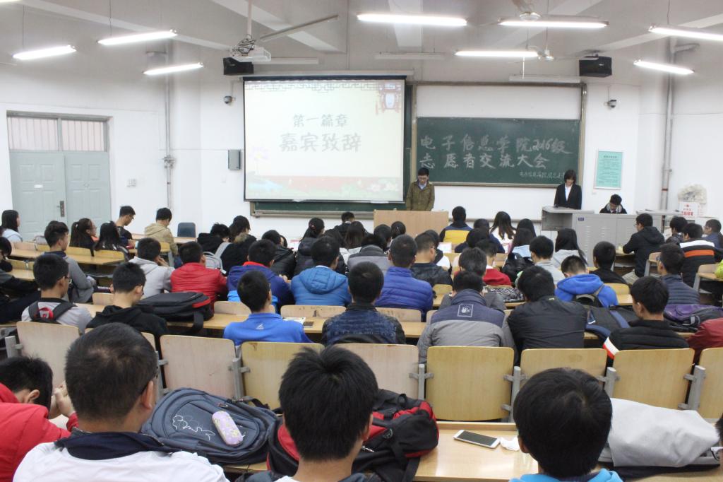 11月13日,电子信息学院团总支青分队于教学楼B-133举办了2016级志愿者交流培训大会。青总队队长李聪颖、各学院青分队队长以及16级注册志愿者参加了本次会议。