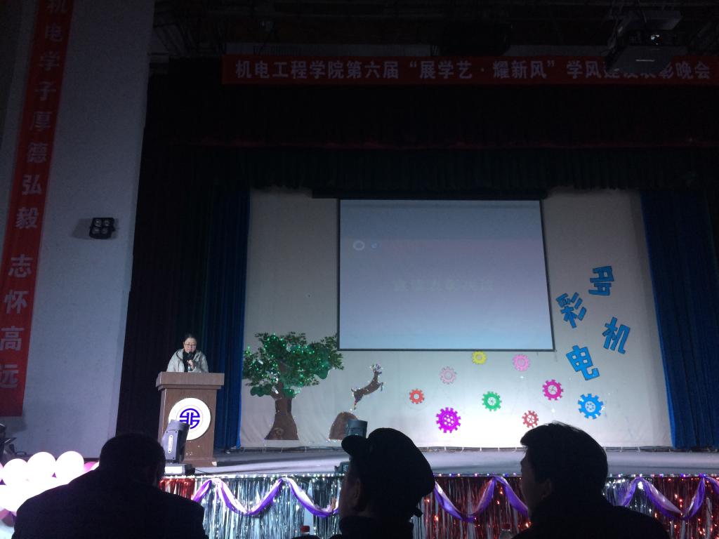 12月20日,机电学院在临潼校区大学生活动中心举办第六届“展学艺 耀新风”学风建设表彰晚会,校党委宣传部部长王志、校学生工作处副处长张慧、校团委副书记凌旭、校党委组织部杜小刚、校国有资产管理处龙博、校发展规划处张雄斌、校学生工作处姚婕、校马克思主义学院曹青,机电学院党委书记杨永革、院长胥光申、副院长贺辛亥、党委副书记魏哲及各教研室教师、2016级各班班主任和全体辅导员出席了晚会,2016级全体学生及部分高年级学生代表参加了晚会。