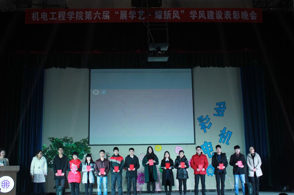 机电学院以“展学艺 耀新风”为主题的学风建设表彰晚会已举办五届,通过对学科类竞赛获奖的同学、各类奖学金获得者以及先进班集体等的表彰奖励,为学院全体学生树立了榜样,同时,也为他们提供了一个展示自我和提高素质的平台。