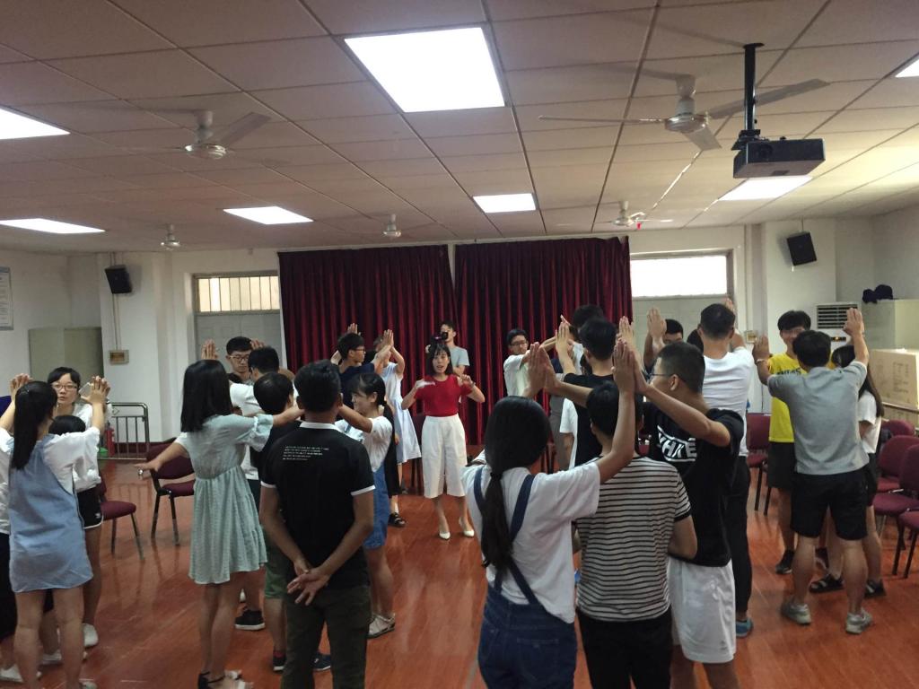 本次活动围绕“提升班级凝聚力”这个主题。设置了8个环节。首先程帅向大家介绍了团体辅导的意义以及注意事项,让大家了解了活动的流程。接下来为大家安排了别出心裁的游戏环节。首先是用于热场的“大风吹”,让同学们打破了原有习惯的交际圈,迅速的融入了团辅的氛围。接下来是“松鼠大树”和“有家真好”两个环节,让同学们体会到了主动性和团队的重要性。下面还进行了“生日排队”、“我喜欢”、“滚雪球”“拍手游戏”等环节,让每位同学在各个环节中充分的合作与了解,同时也锻炼了他们团结协作意识。最后进行了“团队契约”环节,28名同学组成4个小团队用15分钟时间进行了团队队名、契约、口号、队歌创作,并用2分钟进行展示。本环节也表现出了他们的创造力和凝聚力。随着节目的进行大家的热情随之高涨,每个人都沉浸在了欢乐的氛围中。在游戏和分享环节中,大家不知不觉也收获了友谊并且进一步明白了团队的意义,很好的提高了班级凝聚力。