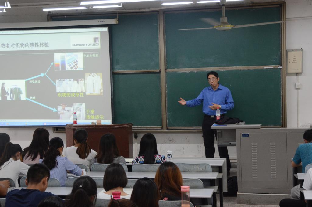报告会上,毛宁涛教授介绍了消费者对织物的感性体验分为视觉效果和触觉,并说明织物的成形性分为动态和静态。一种新的触感特征性能和织物成形性的客观量化评价体系对进行了详细阐述。他的阐述引起了全场的共鸣,学生踊跃提问,现场气氛热烈,毛教授对提问问题进行耐心解答,并对学生考研前景进行分析。