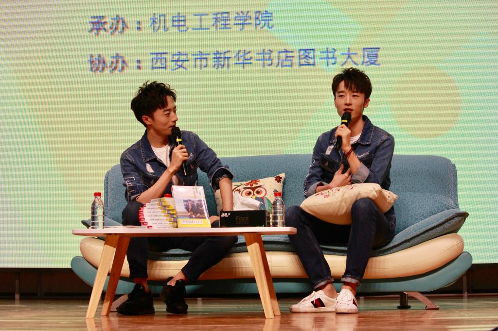 9月23日,由共青团西安工程大学委员会、北京磨铁图书主办,机电学院承办,西安市新华书店图书大厦协办的以“燕园文豪话成长,书香校园品人生”为主题的第十届“书香工程大”系列活动之作家分享交流会在西安工程大学临潼校区大学生活动中心隆重举行,本次“书香工程大”活动特邀了中国90后新锐青年作家,北大最帅双胞胎兄弟苑子文和苑子豪来到现场做了关于校园和成长的访谈。校团委书记王晓先、机电学院党委副书记魏哲及全体辅导员、1000余名同学以及校外慕名而来的百余名粉丝参加了活动,活动由机电学院团总支书记刘沫含主持。