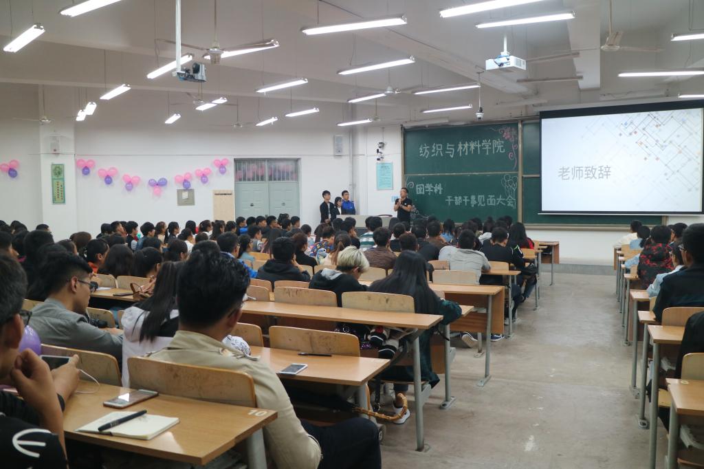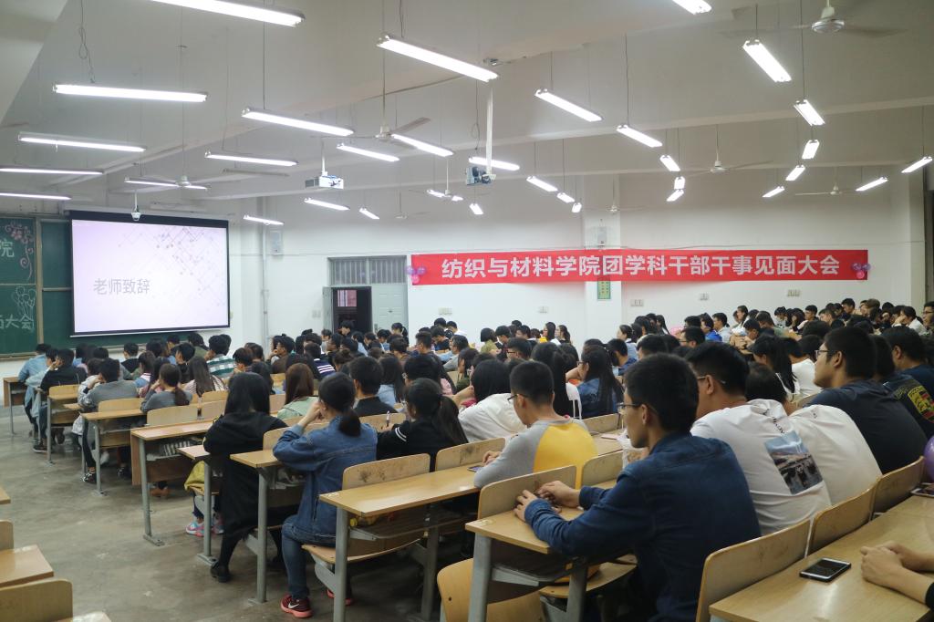 2017年9月27日18时30分,纺织与材料学院2017团学科干部干事见面大会在临潼校区B-237室顺利召开。纺织与材料学院团总支书记付成程、17级辅导员曹鑫、15级主席团以及团学科干部干事参加了此次大会。本次大会由16级学生会副主席李云主持。
