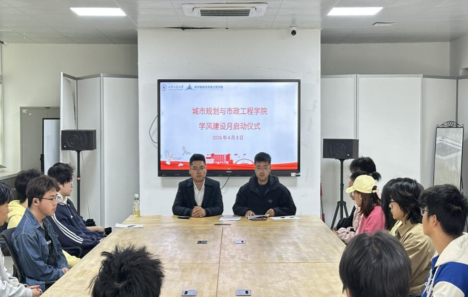 为进一步深化学风建设,营造严谨笃学、互帮互助、积极向上的育人氛围,2026年4月3日中午,城市规划与市政工程学院举行了2026年学风建设月启动仪式。学院学生工作办公室主任陆瑞成、辅导员王新炜出席仪式,各年级主要学生干部代表参加活动。