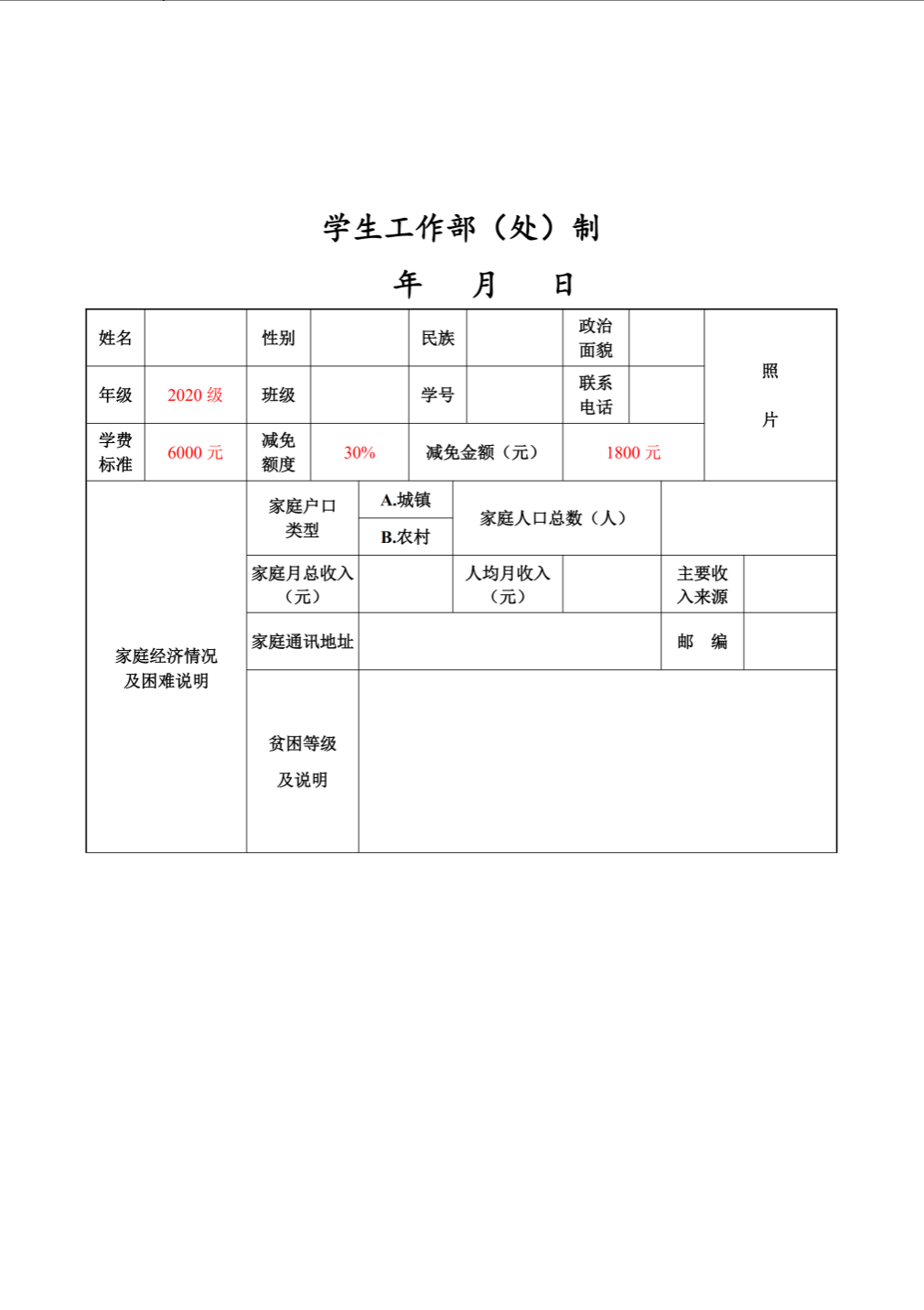 (二)减免50%:资助对象为父母双方有一方亡故而家庭无收入来源经济特别困难的学生、家庭经济特别困难老少边穷地区家居农村的学生;