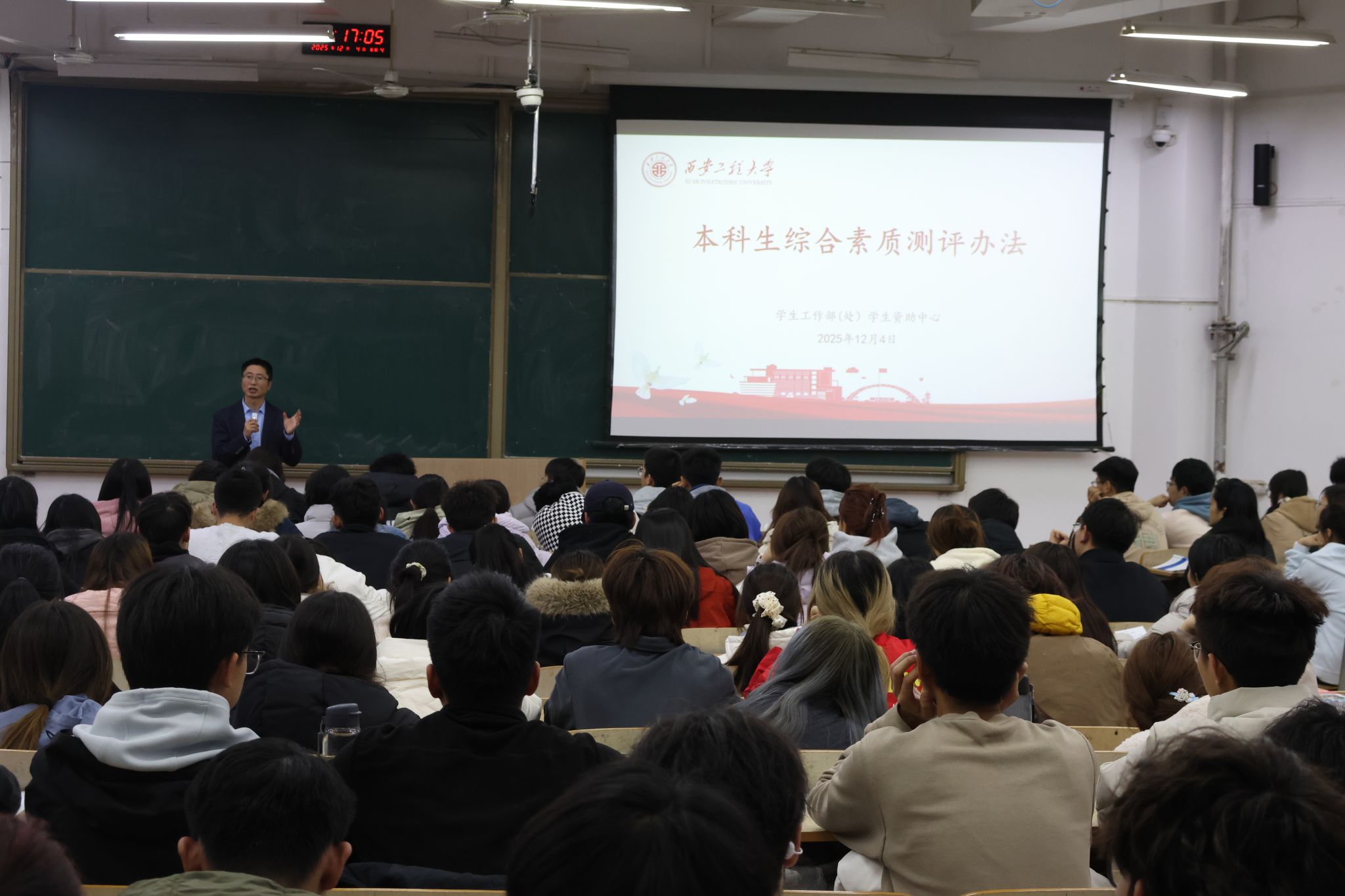 为推进2025版《西安工程大学本科生综合素质测评办法》执行,学生工作部(处)面向辅导员和2025级本科生组织开展了综合素质测评办法专项学习活动。活动坚持“分层培训、精准宣讲、全面覆盖”的原则,通过系统设计、逐级推进,引导学生深入了解办法内容,准确把握评价标准,确保政策入脑入心、落实见效。